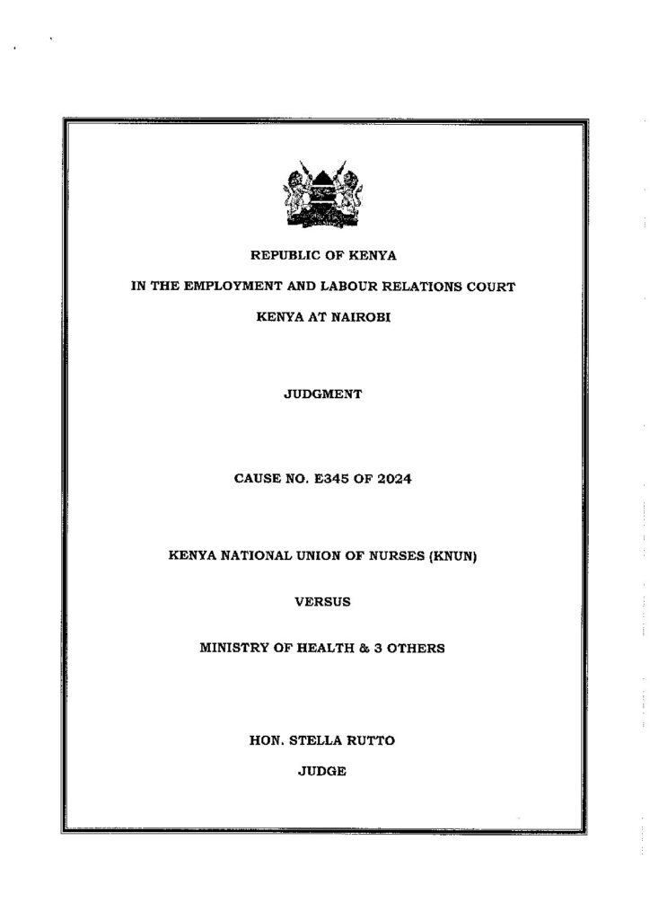 UHC NURSES JUDGMENT – COURT ORDERS NURSES TO BE PAID ACCORDING TO SRC CIRCULARS. / Main News / By KNUN OFFICE JUDGMENT